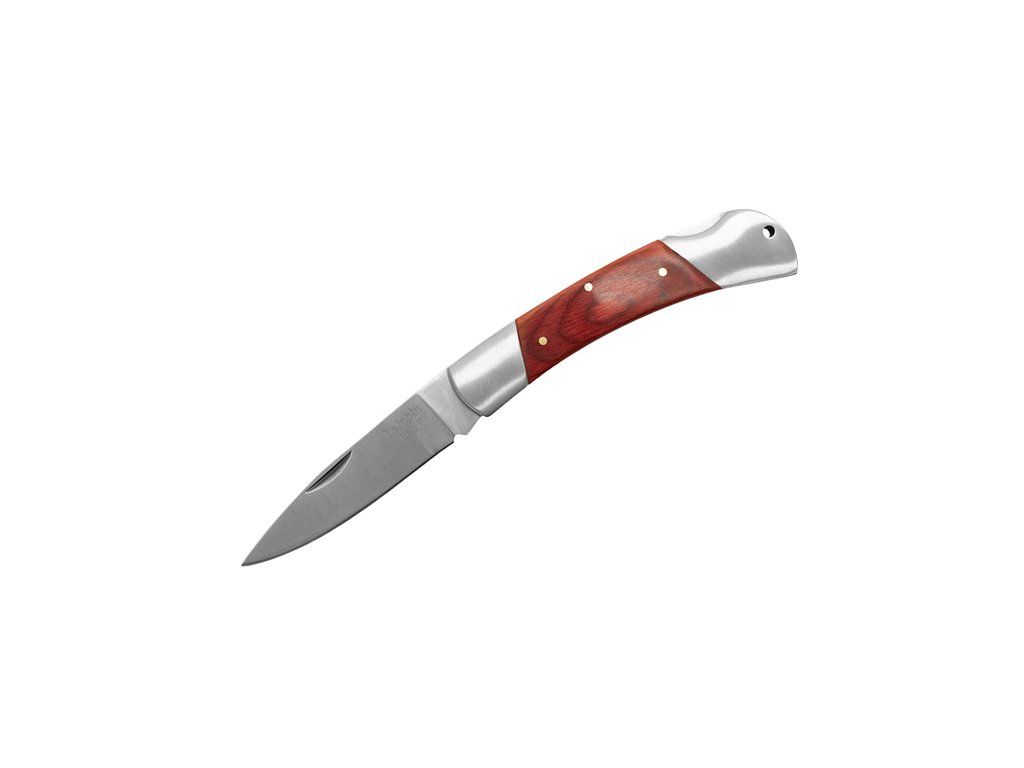 Jak již jeho název napovídá, CAMPY je skvělý pomocník při kempování, na rybách, či jako příruční zavírací nůž do lesa na jednoduchou přípravu jídla a podobně. Má ideální velikost a nabízí skvělý úchop. Střenka je tvořena kombinací červené imitace dřeva a kovovými prvky. V zadní části rukojeti se nachází tlačná pojistka čepele a otvor na provlečení šňůry. Čepel má délku 6,5cm, tvar drop-point s vysokým plochým výbrusem. CAMPY je univerzální skládací nůž s dobrou cenou a dobrým tvarem, který ho předurčuje pro každodenní outdoorové použití. Technické parametry: Celková délka: 150mm Délka čepele: 65mm Výška čepele: 21mm Tloušťka čepele: 3mm Materiál čepele: nerezová ocel Hmotnost: 158gDoplňkové parametry