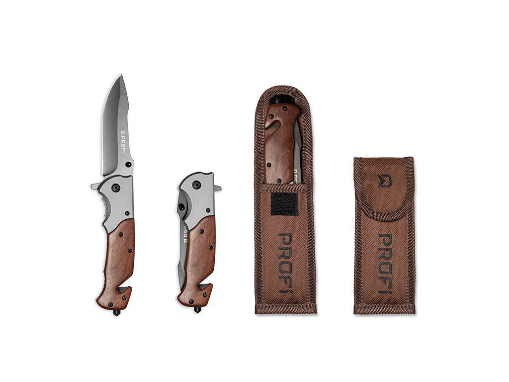 Univerzální skládací nožík Delphin PROFI, který využijete nejen při rybách ale také při turistice nebo procházce v přírodě. Rukojeť je tvořena kombinací skutečného kvalitního dřeva a kovu. Nůž je vybaven klipem, díky čemuž si jej jednoduše umíte uchytit na opasek nebo zajistit v kapse proti vypadnutí. Čepel má celkovou délku 100mm a je zajištěna pojistkou proti sklopení během používání. Čepel má tvar spear-point (kopí) s vrchním falešným ostřím. Nůž PROFI je navíc vybaven řezačem šňůr, provázků a ostrým hrotem pro rozbíjení skla. Balení obsahuje praktické látkové pouzdro, díky čemuž bude chráněn před poškozením například při transportu. Technické parametry: Celková délka: 230mm Délka čepele: 100mm Výška čepele: 30mm Tloušťka čepele: 3mm Materiál čepele: nerezavějící ocel Hmotnost: 190gDoplňkové parametry