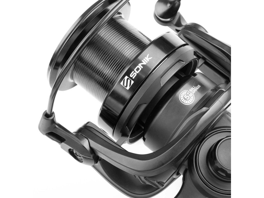 Naviják Sonik XTRACTOR+ FS 6000 LC je kompaktní naviják typu long cast, vytvořený speciálně pro rybáře, kteří potřebují prodloužený dosah náhozu při použití kratších, kompaktních kaprových prutů. Tento model se dokonale hodí k prutům ze série XTRACTOR+, zejména ve verzích s testovací křivkou 3,25 lb a vyšší. Konstrukce je založena na grafitovém těle a rotoru, což zajišťuje lehkost a odolnost, a matné, černé provedení mu dodává moderní vzhled. Systém mikroregulace přední brzdy a nezávislý volnoběh zadní brzdy umožňují přesnou kontrolu během záběru ryby i jejího zdolávání. Díky hladkému chodu 5+1 ložisek a převodovému poměru 5,1:1 je navíjení až 107 cm na jednu otočku kličky, což umožňuje rychlé navíjení, zvláště z větších vzdáleností. Zabudovaný "plovoucí" systém vedení vlasce (Floating Rotor Line Guard) a zvětšená rolnička zajišťují ideální navíjení vlasce, čímž minimalizují riziko zamotání. Naviják má také dvě pružinové klipsy, umožňující přesné označení vzdálenosti náhozu bez rizika poškození vlasce. Kapacita cívky umožňuje navinutí až 465 m vlasce o průměru 0,30 mm nebo 400 m o průměru 0,35 mm, což činí tento model skvělou volbou pro větší vodní nádrže. Vlastnosti: • Kapacita cívky: 0,30mm – 465 m, 0,35mm – 400 m • Mini long cast FS naviják – kompaktní naviják umožňující delší náhozy • Mikroregulace přední brzdy • Nezávislý systém volnoběhu • Plovoucí systém vedení vlasce (Floating Rotor Line Guard) • 5+1 kuličkových ložisek • Dva klipsy na pružinách pro přesné označování vzdálenosti náhozu • Matné černé provedení • Ergonomická klička s gumovou rukojetí • Maximální síla brzdy: 16 kg • Převodový poměr: 5,1:1 • Návin 107 cm na jednu otočku kličky • Hmotnost 545 gDoplňkové parametry