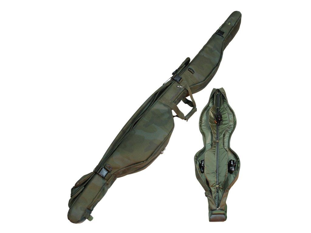 Kompaktní prostorově úsporné obaly na pruty, které bezpečně uloží a přepraví nejen vaše pruty, ale i další příslušenství. Díky chytrému vnitřnímu uspořádání jsou obaly velmi úzké, ale jsou navrženy tak, aby snadno pojmuly i velké navijáky a 50mm kroužky. Plně polstrované přepážky a popruhy na pruty na suchý zip udrží vaše pruty na místě a v bezpečí. Inovativní systém bočních kapes lze rozšířit tak, aby pojmul dokonce brolly, ale také podběrák, vážící sak, podložku a vidličky. V případě potřeby můžete z boku přidat ještě další dva pruty. Mezi další funkce patří dvě rukojeti pro lepší manipulaci při nakládání, polstrovaný ramenní popruh a dvě vnější kapsy na olova. Vlastnosti: • Všechny modely mohou pojmout další dva pruty • Zesílená špička a spodní část obalu • Postranní kapsy na podběrák, vážící sak a vidličky • Rozšiřující boční kapsa pro uložení brolly • Plně vypodšívkované a polstrované • Kompatibilní s velkokapacitními navijáky a 50mm očky • Materiál Camo Bank-Tek HD 600D PVC • Dvě vnější kapsy na olova • Dvě madla pro snadné nakládání do auta a polstrovaný ramenní popruh • Rozměry: D170 x Š24 x H2 cmDoplňkové parametry