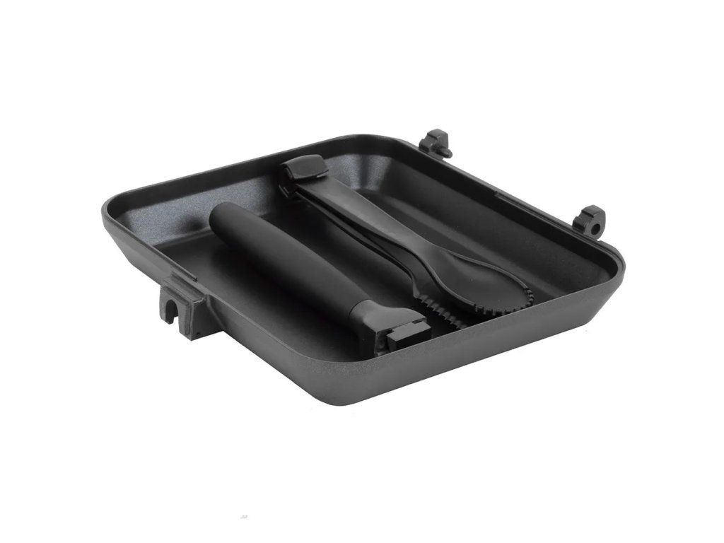 Řada nádobí SONIK SIZZLA byla navržena s ohledem na maximální flexibilitu, pohodlí a všestrannost. Pánev SIZZLA Multi-pan má perfektní velikost pro širokou škálu jídel díky své hloubce 30 mm a širokému obdélníkovému tvaru, který poskytuje dostatečný prostor pro vaření celé řady různých pokrmů. Je snadno přenosná s odnímatelnou rukojetí, která je vybavena naším super odolným a bezpečným upevňovacím systémem T-Lock, který má nízký profil a umožňuje tak snadné uložení pánve i do té nejkompaktnější kuchařské sady. V neposlední řadě přichází SONIK SIZZLA s mimořádně praktickými víceúčelovými kleštěmi, které si při vaření snadno odložíte na rukojeť a v případě potřeby jednoduše rozdělíte na dvě samostatná kuchyňská náčiní – vařečku a špachtli. Vlastnosti: • Lehká litá hliníková pánev • Vysoce odolný fluoropolymerový nepřilnavý povrch • Odnímatelná rukojeť pro snadné skladování • Super odolný systém uchycení rukojeti T-lock • Nízkoprofilová šestihranná základna pro přenos tepla • Zesílený D-pant umožňující spojení více pánví • Víceúčelové kleště součástí balení • Nevhodné pro použití na indukčních varných deskách • Přepravní rozměry (Š x H x V): 230 x 225 x 35mm • Rozměry včetně rukojeti (Š x H x V): 230 x 395 x 35mm • Objem: 1,1 l • Hmotnost: 635g (včetně rukojeti a příslušenství)Doplňkové parametry