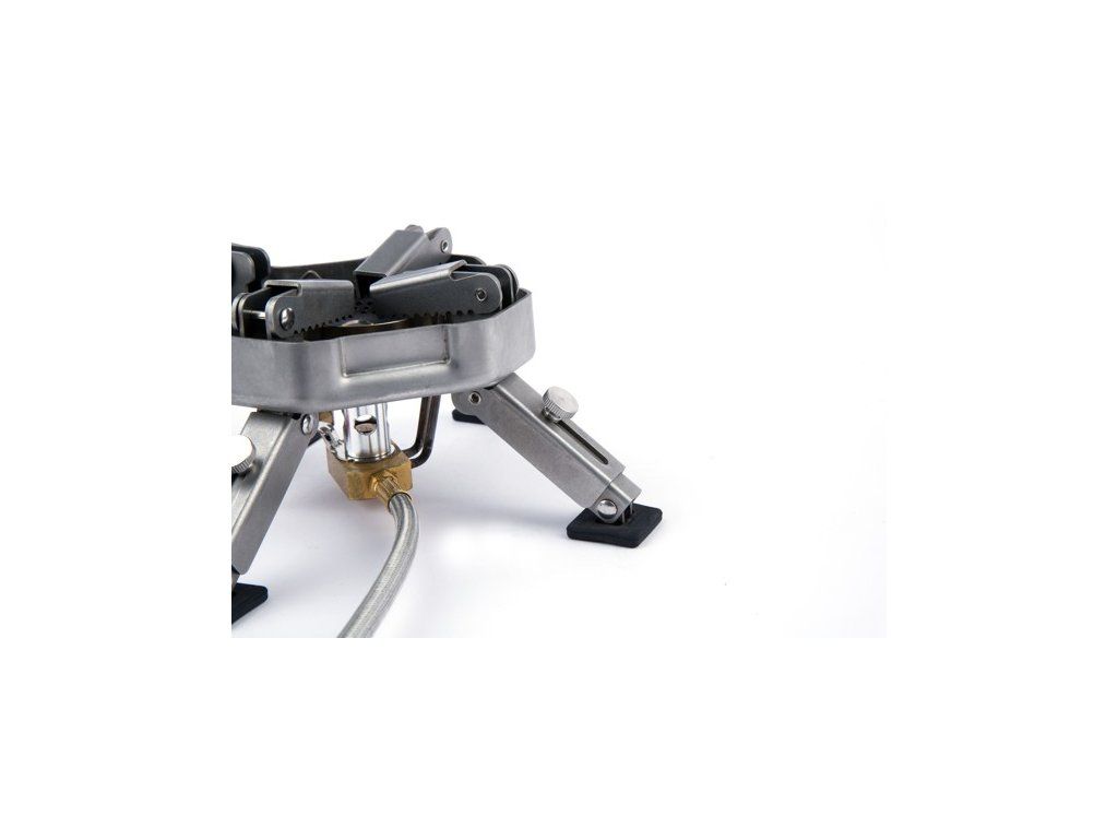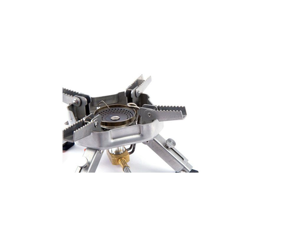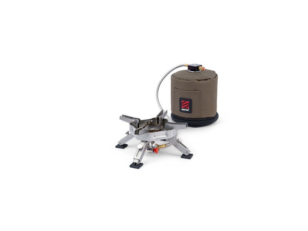 Vařič SONIK Sizzla SuperStove™ posouvá využití kempingových vařičů na další úroveň. Byl navržen s několika klíčovými vylepšeními oproti tradičním kempingovým vařičům. První zahrnuje naši novou technologii hořáku Heat-Kontrol™, která umožňuje širší rozsah variabilního nastavení výkonu. Dalším vylepšením jsou přepracované plynové výstupy Low-Flow™, které poskytují stabilnější výstupní výkon, zejména při nastavení nízkých teplot, což nabízí mnoho nových možností při vaření. Integrovaná konstrukce hořáku Windscreen™ udržuje spalování stabilní a předehřívací spirála zajišťuje, že spotřeba plynu je vždy optimální a efektivní. Sizzla SuperStove™ je také extrémně stabilní díky svým čtyřem plynule výškově nastavitelným nohám, širokému „rozkročení“ a super nízkému těžišti. Díky jeho kvalitní konstrukci z nerezové oceli je také velice odolný. Pro jeho ochranu během transportu je dodáván v pevném nylonovém přenosném obalu. Vlastnosti: • Robustní superstabilní čtyřnohý skládací design • Plynule výškově nastavitelné nohy pro dokonalé vyrovnání • Technologie hořáku Heat-Kontrol™ pro široký rozsah teplot vaření • Plynové výstupy Low-Flow™ pro stabilní plamen při nižším nastavení teploty • Konstrukce hořáku Windscreen™ • Předehřívací spirála pro efektivní spalování plynu • Samonivelační pogumované protiskluzové nožičky • Piezo zapalování, není potřeba zapalovač • Pevná konstrukce z nerezové oceli • Nerezová opletená hadice v prodloužené délce • Hlavní plynový konektor s dvojitým těsněním pro maximální spolehlivost • Součástí je nylonový úložný obal • Vhodné pro použití s butanovými/propanovými kartušemi se závitem EN417 ISO • Plynová kartuše není součástí balení • Výkon: 2800W • Rozměry - složený: 95 x 95 x 95 mm • Rozměry - rozložený: 145 x145 x 80-94 mm • Materiál: nerezová ocel, hliník, mosaz • Hmotnost: 570gDoplňkové parametry