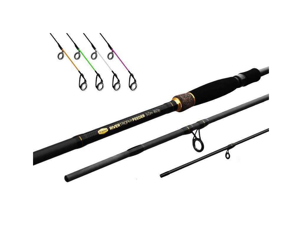 Delphin RIVER TROPHY byl vytvořen na žádost zákazníků, kteří vyžadují krátký a tuhý feeder, určený pro lov říčních kaprů či parem. Dokáže zastavit a udržet i ty největší jedince před překážkou, přičemž neztrácíte výhodu feedrové prutu. Prut byl vyroben ze štíhlého uhlíkového blanku s parabolickou akcí a vrhací zátěží 160g. Osazen je pevnými očky s výplněmi SIC a praktickou dělenou rukojetí. Rukojeť byla navržena z kombinace materiálů EVA a RUBBER CORK-u. Vytváří tak nádherný celek doplněný o tmavou křížovou punčochu blanku nad rukojetí. Vzhledem k povaze blanku se prut dodává s 4 karbonovými špičkami, se zvětšenými vodícími očky. Technické parametry: Délka prutu: 300cm Vrhací zátěž: 160g Průměr blanku nad rukojetí: 14,01mm Počet oček (prut + špička): 5 + 5 Transportní délka: 106,5cm Hmotnost: 202g Rukojeť: dělená, EVA pěna + RUBBER CORK Délka rukojeti (od spodní části prutu po střed sedla): 43cm Průměr špičky: 3.40mm Špičky: 1x Light, 1x Medium, 1x Heavy, 1x Ultra HeavyDoplňkové parametry