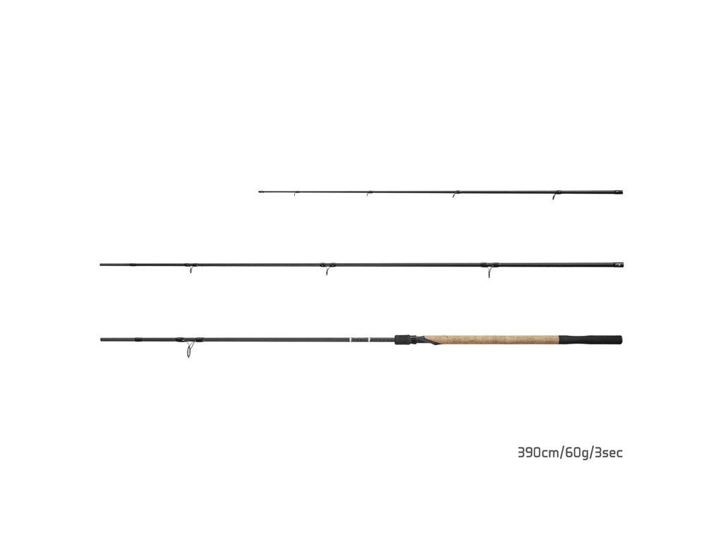 Method Conxept je feederový prut určený především příznivcům stále populárnějšího lovu pomocí method feederového krmítka. Tato řada prutů se vyznačuje kombinací citlivosti, jemnosti a zároveň dostatečné síly, která poskytuje všestrannost a vyváženost potřebnou pro plnohodnotný lov. Blank prutu je vytvořen z lehkého 24T karbonu, který dodává dostatečnou pevnost a odolnost a zároveň umožňuje konstrukci prutu o malém průměru a tím jeho nízkou hmotnost. Vyznačuje se parabolickou akcí, ideální pro plynulé nahazování a vychutnání si souboje s každou zdolávanou rybou. Progresivní akce prutu zároveň snižuje možnost vyváznutí ryby z háčku. Kombinace ergonomicky tvarované EVA pěny a korku na rukojeti poskytuje výborný úchop a příjemnou manipulaci s prutem i během častého nahazování a zdolávání. Samozřejmostí u tohoto modelu je také spolehlivé sedlo s předním závitem, do kterého lze upnout všechny standardní feedrové navijáky. Blank prutu je osazen přetvarovanými, dvoustopkovými očky se SIC výplní, které excelentně vedou vlasec či šňůru a zároveň zamezují jejich zamotání během nahazování. Díky jejich černé barvě vytvářejí spolu s matným blankem a korkem na rukojeti vyladěný sportovně-elegantní design, doplněný o svěží, bílo zelené prvky. Delphin Method Conxept vám nabízíme v různých délkách, vzhledem k individuálním potřebám každého rybáře. V základu je dodáván se setem tří špiček, které umožňují přizpůsobit citlivost daným podmínkám. Technické parametry: Model 330cm/60g Počet dílů: 3 Průměr blanku nad rukojetí: 11mm Počet oček: 11 Transportní délka: 116cm Hmotnost: 186g Rukojeť: EVA pěna Délka rukojeti (od spodní části prutu po střed sedla): 45cm Průměr špičky: 3mm Model 360cm/60g Počet dílů: 3 Průměr blanku nad rukojetí: 11,5mm Počet oček: 12 Transportní délka: 126,5cm Hmotnost: 220g Rukojeť: EVA pěna Délka rukojeti (od spodní části prutu po střed sedla): 48cm Průměr špičky: 3mm Model 360cm/60g Počet dílů: 3 Průměr blanku nad rukojetí: 12mm Počet oček: 13 Transportní délka: 136cm Hmotnost: 260g Rukojeť: EVA pěna Délka rukojeti (od spodní části prutu po střed sedla): 51mm Průměr špičky: 3mmDoplňkové parametry