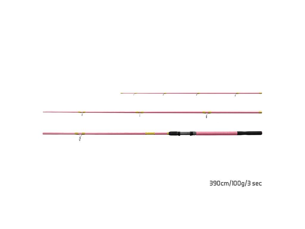 Tak jako všechny produkty z řady Queen, i tento prut je určen speciálně pro něžné pohlaví. Konkrétně pro ty dámy, které mají v oblibě zejména lov na feeder. Navržen je v přitažlivé růžové barvě v kombinaci se zlatými a černými prvky. Základem je ověřený štíhlý blank s parabolickou akcí a výbornými mechanickými vlastnostmi. Celá rukojeť je potažena EVA pěnou, která je velmi příjemná na dotek i ve studeném zimním počasí. Navíc je navržena v barevné dvojkombinaci růžové s černou, což vytváří vizuálně velmi pěkný prvek. Rukojeť je v jednom místě ergonomicky zúžená a ukončena je vkusným hliníkovým prvkem růžové barvy s logem. Díky citlivým špičkám, které jsou s prutem dodávány, vám neunikne ani ten nejjemnější záběr od malých ryb. Blank je osazen kvalitními a lehkými SIC očky, které nevytvářejí žádné nadbytečné tření a odpor při průchodu vlasce. V základu je prut dodáván se 1. karbonovou (Heavy) a 2. CarbonGlass (Light, Medium) špičkami. Feederové pruty QUEEN nebudou jen ozdobou každé rybářky, ale také plnohodnotným pomocníkem při lovu. Technické parametry: Model: 330cm/100g Počet dílů: 3 Průměr blanku nad rukojetí: 12,5mm Počet oček (prut + špička): 6+5 Transportní délka: 115cm Hmotnost: 210g Rukojeť: EVA pěna Délka rukojeti (od spodní části prutu po střed sedla): 42cm Průměr špičky: 3mm Špičky: CarbonGlass - Light, Medium Carbon - Heavy Model: 360cm/100g Počet dílů: 3 Průměr blanku nad rukojetí: 13mm Počet oček (prut + špička): 7+5 Transportní délka: 125cm Hmotnost: 230g Rukojeť: EVA pěna Délka rukojeti (od spodní části prutu po střed sedla): 45cm Průměr špičky: 3mm Špičky: CarbonGlass - Light, Medium Carbon - Heavy Model: 390cm/100g Počet dílů: 3 Průměr blanku nad rukojetí: 14mm Počet oček (prut + špička): 8+5 Transportní délka: 135cm Hmotnost: 260g Rukojeť: EVA pěna Délka rukojeti (od spodní části prutu po střed sedla): 47cm Průměr špičky: 3mm Špičky: CarbonGlass - Light, Medium Carbon - HeavyDoplňkové parametry