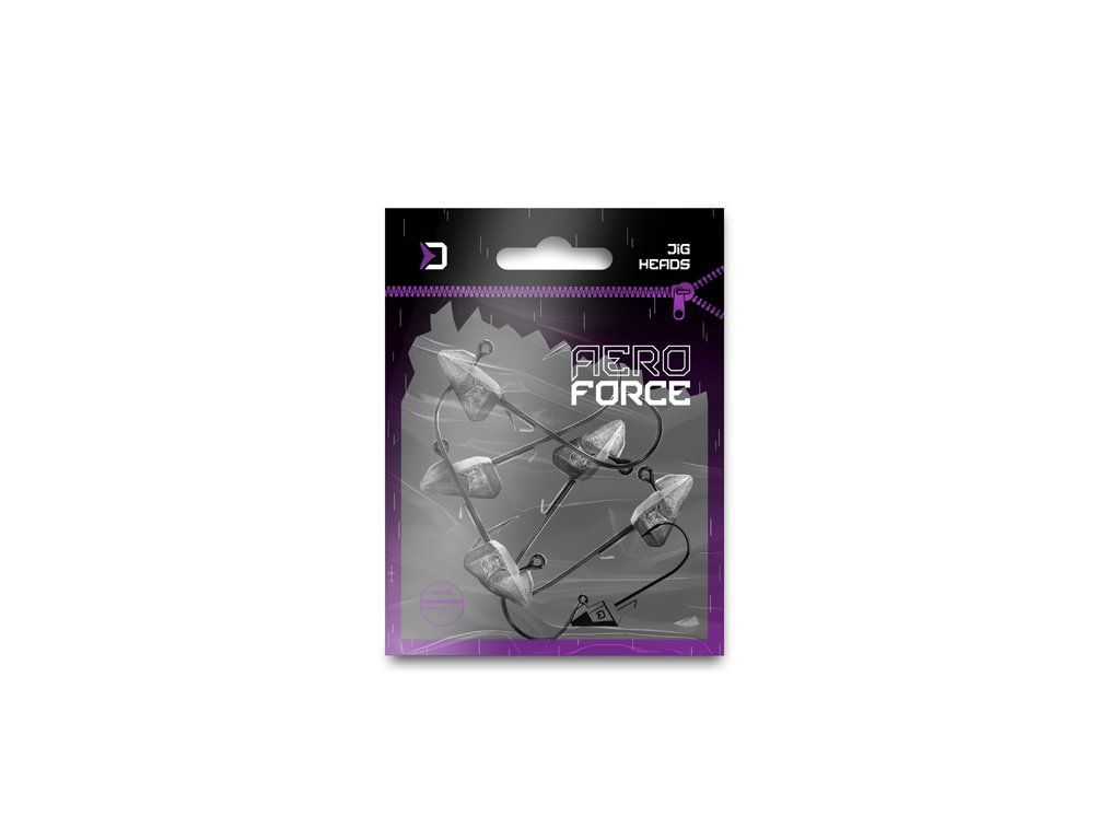 Delphin Aeroforce je speciálně tvarovaný jig určený k lovu pomocí měkkých umělých nástrah v blízkosti dna. Charakteristickým znakem je rovná plocha nacházející se na spodní straně hlavičky a speciální tvar, díky kterému je těžiště posunuto podstatně níže než je tomu u klasických jigů s kulatou hlavou. To způsobuje, že háček a nástraha zůstává vztyčená po dopadu na dno, což nejen snižuje riziko uvíznutí o různé překážky, ale zlepšuje prezentaci nástrahy která leží nehybně na dně. Aerodynamický tvar umožňuje snazší pronikání nástrahy různými překážkami, hladší a jednodušší pohyb nástrahy vodním sloupcem a její jemnější prezentaci. K zajištění nástrahy je místo límečku použit drátěný držák, který spolehlivě drží nástrahu na místě a nepoškozuje ji roztahováním. Samozřejmostí je tenký a zároveň velmi pevný háček s ostrým hrotem.Doplňkové parametry