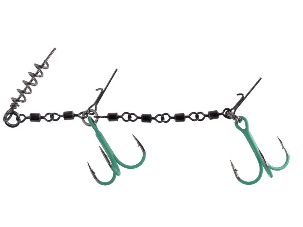 Moderní stingery s vrutem a piny. Vyrobeno z odolných obratlíků, které poskytují velmi silné a stabilní spojení. Trojháčky potažené fluo-povrchovou úpravou představují další výhodu, která také zvyšuje atraktivitu nástrahy.Doplňkové parametry