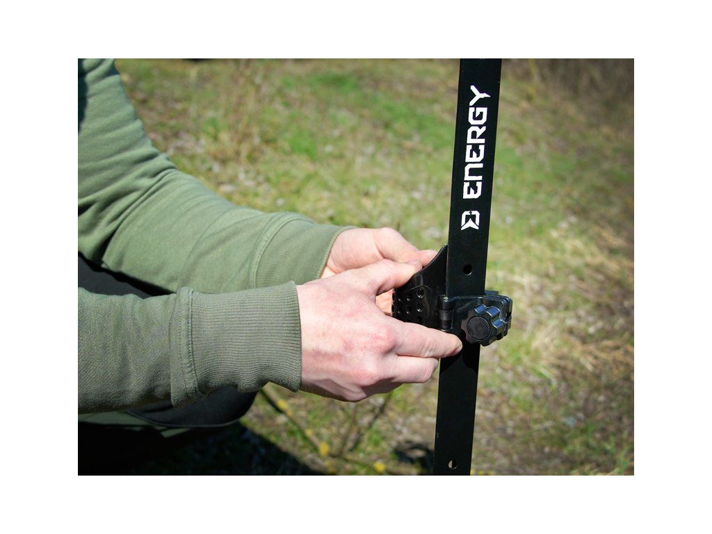 Delphin ENERGY je ideální volbou pro příznivce sumcařiny, kteří hledají kvalitní stojan za přijatelnou pořizovací cenu. Stojan ENERGY je navržen pro používání v různých podmínkách a poskytne spolehlivost a stabilitu i při razantních záběrech od silných sumců. Konstrukce stojanu je vyrobena z odolného kovu, který výborně odolává vnějším vlivům a nechtěnému mechanickému poškození. Spodní část konstrukce je opatřena ostrým hrotem, který umožňuje zapíchnutí stojanu i do tvrdší půdy. Pro lepší manipulaci při zapichování je ke stojanu přivařen nášlap, díky kterému stojan zapíchnete dostatečně hluboko. Velkou výhodou stojanu Delphin ENERGY je posouvatelný držák na prut, který bezpečně udrží různé délky sumcařských prutů. Držák je vybaven více otvory, které slouží k odvádění nechtěné vody. Aby se zabránilo nechtěnému vyskočení prutu při záběru, je stojan v horní části vybaven spolehlivým a dostatečně silným zajišťovacím mechanismem. Díky těmto prvkům je stojan stabilní a bez problémů udrží prut na svém místě během záběru. Technické parametry: Délka stojanu: 100cm Délka spodní části (od nášlapu po hrot): 53 cm Tloušťka plechu: 3,7 mm Hmotnost: 1260gDoplňkové parametry