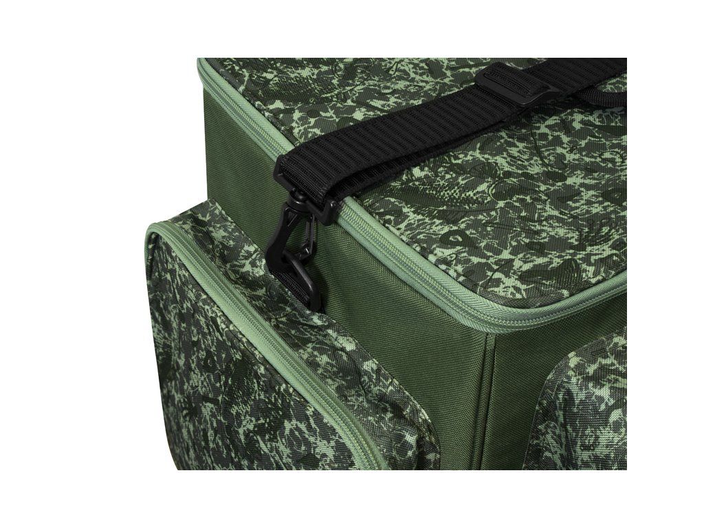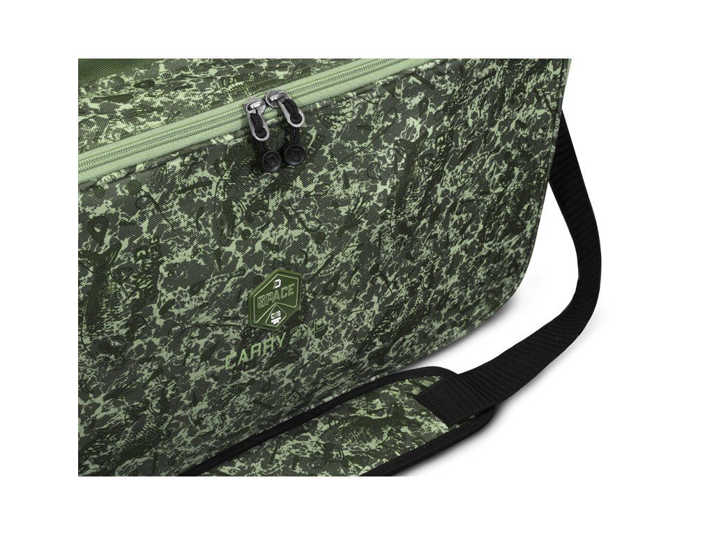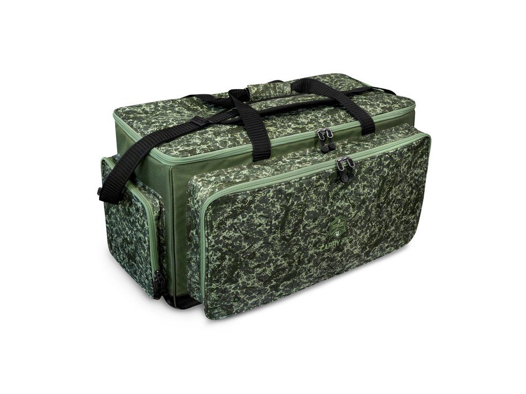 Delphin SPACE je označení pro exkluzivní sérii tašek z dílny značky Delphin. Vyznačuje se špičkovým zpracováním, kvalitními zipy, ale zejména výjimečným designem s použitím C2G kamufláže. Delphin CarryALL 3XL v provedení C2G je eXXXtra velká praktická taška pro uložení a transport rybářského příslušenství či oblečení. Navržena byla s důrazem na praktičnost, trvanlivost a odolnost vůči nepříznivým povětrnostním vlivům. Ze všech stran je důkladně polstrována 6mm silnou vrstvou, pro maximální ochranu výbavy uvnitř. Díky polstrování stěn je mimořádně stabilní i v případě, že je naprosto prázdná. Celá spodní část a boky do výšky až 5 cm jsou opatřeny kvalitním nepromokavým materiálem. Nehrozí tak znečištění a následně znehodnocení produktu při položení například na mokrou nebo špinavou zem. Taška navíc disponuje 3 vnějšími zipovatelnými kapsami pro uložení dalšího příslušenství. Uvnitř najdete ještě jednu velkou síťovou kapsu. Samotný vnitřek je navržen tak, abyste do něj s lehkostí ukládali další tašky série SPACE či AREA. K variabilitě přispívá také nastavitelná přepážka na suchý zip, umožňující přizpůsobit prostor tašky podle potřeby a oddělit tak například rybářské potřeby od oblečení či jídla. Maximální komfort dotváří mimořádně měkké polstrování popruhu pro zavěšení na rameno či praktické rukojeti pro nošení tašky v ruce. Technické parametry: Rozměr tašky: 80x40x35cm Čistý rozměr vnitřního prostoru: 70x31x34cm Rozměr přední kapsa: 65x25x5cm Rozměr boční kapsy: 35x25x5cm Vnitřní síťovaná kapsa: 70x29cm Objem: 90l Stylová patentovaná kamufláž z dílny značky Delphin pod označením C2G má mnoho podob a úhlů pohledu. Přesně tak i její název, který můžeme volně přeložit jako Carpath 2. generace, což přímo odkazuje na jejího předchůdce, ale můžeme ho číst i jako Carpath to Green, tedy přechod myšlenky Carpathu do zelené barvy. Její jedinečnost a nezaměnitelnost spočívá v prvcích, ze kterých je vytvořena. Na první dojem jde o kamufláž tvořenou třemi různými odstíny zelené. Všechno se však změní při detailnějším pohledu, kdy si všimnete siluety kaprů, komponent kaprařské montáže a log značky Delphin spolu s označením C2G. Díky tomuto neopakovatelnému provedení se vaše rybářská výbava okamžitě stane jedinečnou a maximálně originální.Doplňkové parametry
