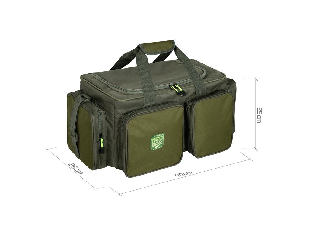 Odolná a praktická CarryAll taška vyznačující se velkým úložným prostorem a spoustou praktických kapes, díky čemuž bez problémů pojme rybářskou výbavu i oblečení. Díky svým rozměrům nabízí dostatek úložného prostoru a spolehlivě ochrání obsah před nepříznivými podmínkami. Vyrobená je z kvalitních materiálů, které prodlužují její životnost a zároveň chrání samotnou tašku. Pro maximální bezpečnost výbavy je celý vnitřní prostor důkladně polstrovaný – což v této cenové kategorii rozhodně není samozřejmostí. Spodní část je navíc opatřena nepromokavou vrstvou z odolného gumového materiálu, takže ji bez obav můžete položit i na mokrou či znečištěnou zem. Hlavní úložný prostor doplňují čtyři prostorné kapsy se zipem, umístěné na přední a bočních stranách tašky. Boční kapsy mají ideální rozměry pro uložení dokladů či různého rybářského příslušenství, například cívky s náhradním vlascem. Každá kapsa je opatřena kvalitním zipem s běžci ve výrazné barvě, díky čemuž je snadno najdete i během noci. O maximální komfort při transportu se stará nastavitelný ramenní popruh s polstrovanou částí na rameno a pevné rukojeti, které umožňují pohodlné nošení v ruce. Produkty ze série NeoBAX se vyznačují kvalitním zpracováním a odolnými materiály, důkladným polstrováním a vkusným designem, přičemž všechny tyto vlastnosti jsou zkombinovány v jednom produktu a dostupné za překvapivě příjemnou cenu. Technické parametry: Celkový rozměr včetně kapes ŠxVxH: 40x25x25cm Rozměr přední kapsa: 20x20 cm Rozměr přední kapsa: 15x20 cm Rozměr boční kapsy: 20x20 cmDoplňkové parametry