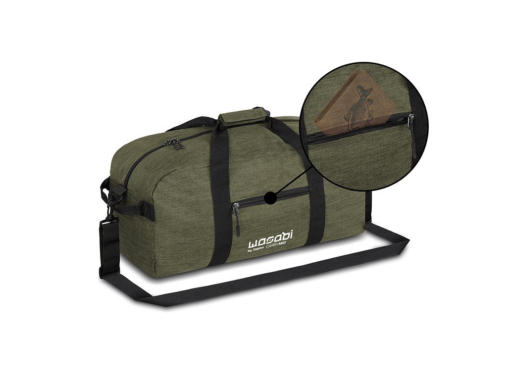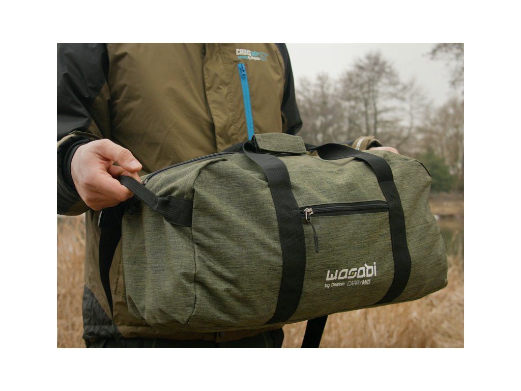 Taška Delphin WASABI CarryMID je praktickým a stylovým doplňkem každého rybáře, který potřebuje mít své vybavení vždy důkladně sbaleno. Tato taška byla navržena s ohledem na praktické využití, funkčnost a velmi příznivou pořizovací cenu, což ji činí ideálním společníkem nejen na rybářské výpravy, ale také na běžné používání. Hlavní úložný prostor tašky umožňuje uschování různých komponent výbavy, nástrah, menších tašek či oblečení. V přední části se navíc nachází kapsa sloužící na menší příslušenství či doklady. Taška je vyrobena z odolného materiálu a je opatřena zipy s praktickými taháčky, usnadňujícími otevírání či zavírání úložných prostor. Pro pohodlné nošení je taška vybavena odnímatelným, délkově nastavitelným popruhem na rameno a dvěma popruhy, sloužícími k přenášení v ruce. Všechny popruhy jsou důkladně prošity, což zaručuje, že taška WASABI CarryMid unese i větší hmotnost bez nechtěného poškození. Designové provedení v zeleno černé barevné kombinaci dokonale pasuje k dalším produktům ze série WASABI. Pokud hledáte stylovou a praktickou tašku za rozumnou cenu, tak WASABI CarryMid je rozhodně správná volba. Technické parametry: Rozměry: 53x27x25 cm Objem: 35 lDoplňkové parametry
