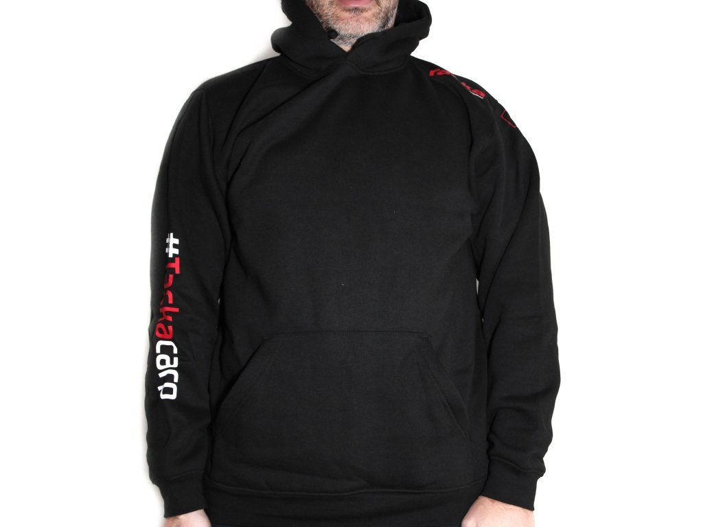 Černá stylová mikina je z kvalitního a příjemného materiálu. Má jednu velkou "klokaní" kapsu a dobrou kapucu.- kapuca a klokaní kapsa