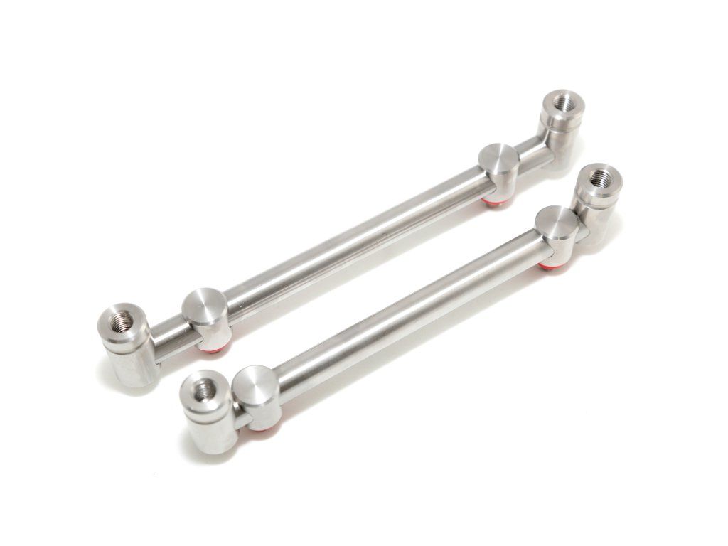 Špičkové elegantní hrazdy vyrobené z nerezové oceli, které zaručují bezpečné a stabilní uložení vašich prutů. Na jejich výrobu byl použit pevný nerezový materiál z UK o tloušťce 13,9 mm. V nabídce jsou hrazdy na 2, 3 i 4 pruty, pevné i výsuvné a na jednu vidličku, či na dvě, tzv. SNAG. Některé mají navíc speciální Dual Lock systém upínání, díky kterému skvěle zafixujete hlásiče i rohatinky. Balení: 2 ks