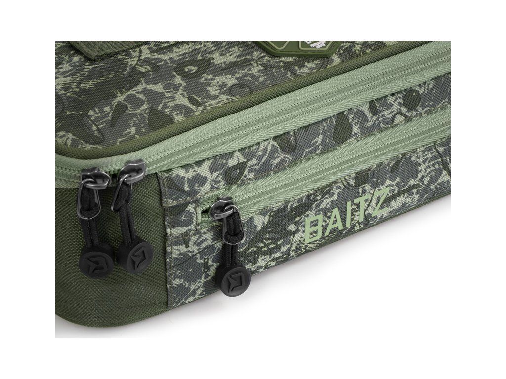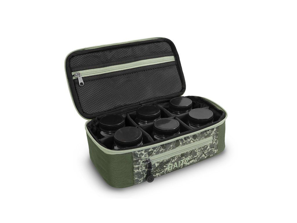 Delphin SPACE je označení pro exkluzivní sérii tašek z dílny značky Delphin. Vyznačuje se špičkovým zpracováním, kvalitními zipy, ale zejména výjimečným designem s použitím C2G kamufláže. BAITZ je kompaktní taška, speciálně navržená pro uskladnění a přenos dipovaných nástrah. V základu obsahuje 6 kusů transparentních plastových dóz s víkem a těsněním. Díky těsnění můžete do dóz bez obav uskladnit nadipované boilies, pelety či jiné nástrahy. Uvnitř tašky se nacházejí přepážky, které vytvářejí šest stejných individuálních přihrádek. Právě v těchto přihrádkách budou dózy s nástrahami vždy dokonale organizovány a připraveny k použití. Stěny a víko tašky jsou důkladně polstrovány 6mm silnou výstelkou, která chrání vnitřní obsah před mechanickým poškozením. Víko tašky je opatřeno síťkovou kapsou se zipem, do které lze uskladnit dodatečné rybářské příslušenství. Velkou výhodou je menší kapsa na přední straně, sloužící k uložení jehel nebo zarážek pro rychlou přípravu montáže. Kompaktní rozměry tašky spolu s textilní rukojetí umožňují snadný přenos. Technické parametry: Vnější rozměry: 30x17x10cm Velikost přihrádky: 8,5x8x7,5cm Počet přihrádek: 6 Rozměr dózy: 6,7x8,5cm Objem dózy: 250mlDoplňkové parametry