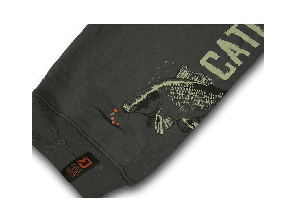 Stylové tepláky tmavě zelené barvy poskytující maximální komfort během dní strávených u vody, ale i při jiných volnočasových aktivitách. Použitá tkanina je dostatečně pružná, měkká a hřejivá, takže se velmi dobře nosí za každých okolností. Tepláky disponují na pase širokou a elastickou gumičkou, která se perfektně přizpůsobí postavě. Po obou stranách, ale i vzadu, se nacházejí prostorné kapsy s uzavíráním na zip. Spodní část tepláků je zúžená a v oblasti kotníků opatřena gumičkami, které zamezují jejich sklouznutí a případnému znečištění. Tepláky Catch me CARP NX jsou doplněny na levém boku efektní grafikou s nápisem CATCH ME IF YOU CAN a kaprem nasávajícím potravu ze dna. V kombinaci se stejnojmennou mikinou a tričkem dostanete stylový outfit, ve kterém se u vody budete cítit maximálně pohodlně. Materiálové složení: 60% Polyester, 40% BavlnaDoplňkové parametry