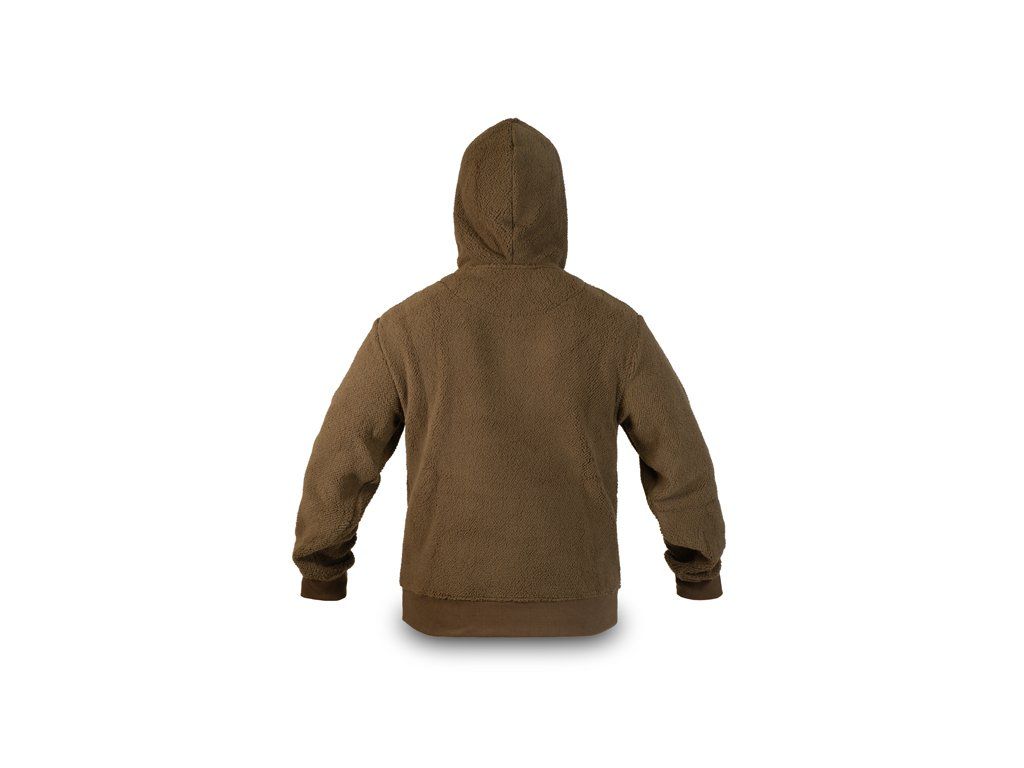 Delphin YOG! je důkazem, že styl lze kombinovat s funkčností a především s komfortem. Je vyroben z měkkého, na dotek příjemného materiálu „teddy fleece“, připomínajícího medvědí srst, který poskytuje vynikající hřejivost a mimořádné pohodlí. Volnější střih zajišťuje neomezený pohyb při chůzi i sezení. Právě tyto vlastnosti by měly být součástí šatníku každého rybáře, který rád tráví dlouhé hodiny u vody. Delphin YOG! se skládá z mikiny a tepláků, které se prodávají samostatně. MIKINA Díky elastickému pásu se mikina dokonale přizpůsobí každé postavě a manžety na rukávech zabraňují nežádoucímu úniku tepla, což oceníte zejména v chladnějších a sychravějších měsících. Mikina je vybavena nastavitelnou kapucí, kterou lze stáhnout pomocí šňůrky, a zvýšeným límcem, jenž je z přední strany elastický. Na přední straně se nachází klokanní kapsa, primárně určená k zahřátí rukou, která však poslouží i pro uložení drobností, jako je například mobilní telefon, peněženka či klíče. TEPLÁKY Elastický pas s nastavitelnou šňůrkou zaručuje, že tepláky perfektně padnou každé postavě. Manžety na spodní části nohavic účinně zabraňují úniku tepla, což oceníte zejména během chladnějších a sychravých dnů. Po bocích se nacházejí dvě praktické kapsy na zip, ideální pro bezpečné uložení drobností, jako jsou mobilní telefon, peněženka či klíče, a zároveň slouží i k zahřátí rukou. Celkové zpracování Delphin YOG! působí stylově, avšak díky použitému materiálu a volnějšímu střihu také mimořádně pohodlně. Netradiční design výrazně podtrhuje vyšívané logo Outline kapra. Tepláky Delphin YOG! jsou ideální volbou pro každého, kdo hledá teplé, měkké a stylové tepláky vhodné na rybářské výpravy nebo pro pohodlné každodenní nošení. Podle přiložené velikostní tabulky si prosím zkontrolujte vhodnou velikost. Technické parametry: Materiálové složení: 100% polyesterDoplňkové parametry