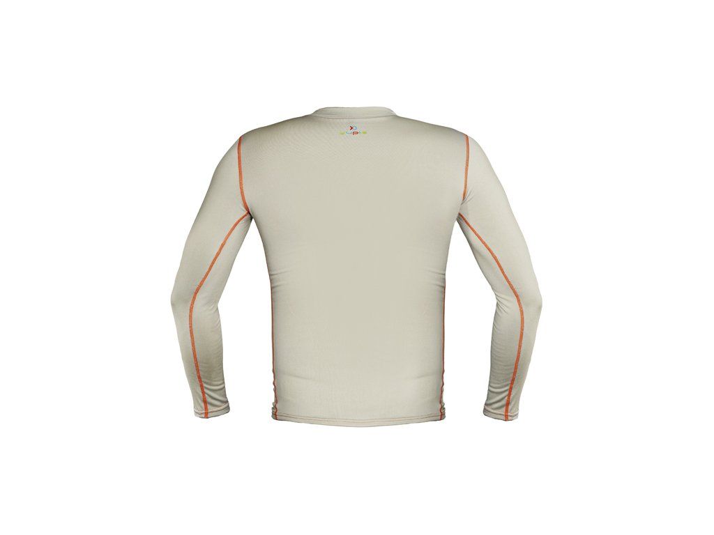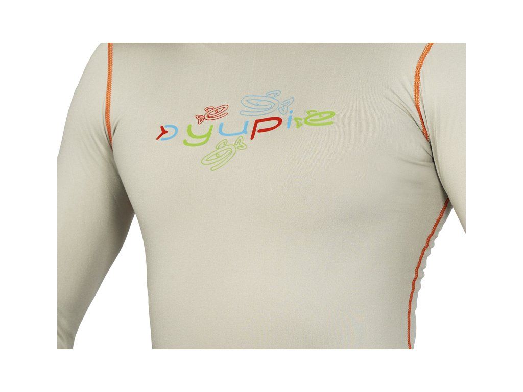 Ochraňte Vaše děti a udržte je v teple pomocí setu termoprádla Delphin YUPIE. Je vyhotoveno v zajímavé tělové barvě doplněné oranžovým prošíváním, výraznými zelenými prvky a různobarevným logem s motivem rybek. Tento set poskytne našim nejmenším tepelný komfort při společném rybaření, turistice nebo jiných outdoorových aktivitách. Použitý materiál má skvělou elasticitu, takže se velmi dobře přizpůsobí a natáhne dle potřeb. Vrchní díl Disponuje dlouhými rukávy a vyvýšeným límcem, což přispívá k udržení optimální tělesné teploty. Elastický límec, konce rukávů a spodní část jsou dodatečně prošívané pro zajištění dokonalého přilnutí ke kůži, aby se tím minimalizovaly úniky tepla. Spodní část vrchního dílu je mírně prodloužena, aby docházelo k ideálnímu krytí se spodky Delphin YUPIE i při pohybově namáhavějších aktivitách. Spodní díl Pružný pás fluo zelené barvy se svojí elasticitou přizpůsobí každému typu postavy a při nošení horního dílu zajistí jeho polohu i během aktivního pohybu. K udržení tepelného komfortu přispívá i zúžené ukončení spodního dílu v oblasti kotníků. Materiálové složení: 92% Polyester 8% Elastan Podle přiložené velikostní tabulky si prosím zkontrolujte vyhovující velikost.Doplňkové parametry
