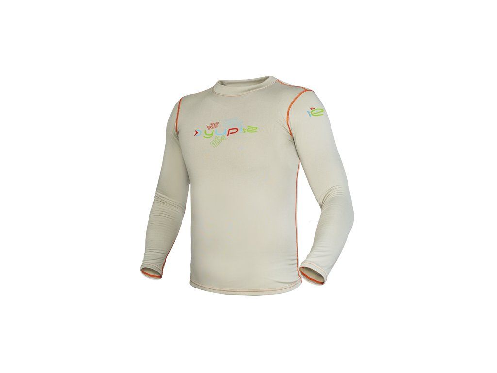 Ochraňte Vaše děti a udržte je v teple pomocí setu termoprádla Delphin YUPIE. Je vyhotoveno v zajímavé tělové barvě doplněné oranžovým prošíváním, výraznými zelenými prvky a různobarevným logem s motivem rybek. Tento set poskytne našim nejmenším tepelný komfort při společném rybaření, turistice nebo jiných outdoorových aktivitách. Použitý materiál má skvělou elasticitu, takže se velmi dobře přizpůsobí a natáhne dle potřeb. Vrchní díl Disponuje dlouhými rukávy a vyvýšeným límcem, což přispívá k udržení optimální tělesné teploty. Elastický límec, konce rukávů a spodní část jsou dodatečně prošívané pro zajištění dokonalého přilnutí ke kůži, aby se tím minimalizovaly úniky tepla. Spodní část vrchního dílu je mírně prodloužena, aby docházelo k ideálnímu krytí se spodky Delphin YUPIE i při pohybově namáhavějších aktivitách. Spodní díl Pružný pás fluo zelené barvy se svojí elasticitou přizpůsobí každému typu postavy a při nošení horního dílu zajistí jeho polohu i během aktivního pohybu. K udržení tepelného komfortu přispívá i zúžené ukončení spodního dílu v oblasti kotníků. Materiálové složení: 92% Polyester 8% Elastan Podle přiložené velikostní tabulky si prosím zkontrolujte vyhovující velikost.Doplňkové parametry