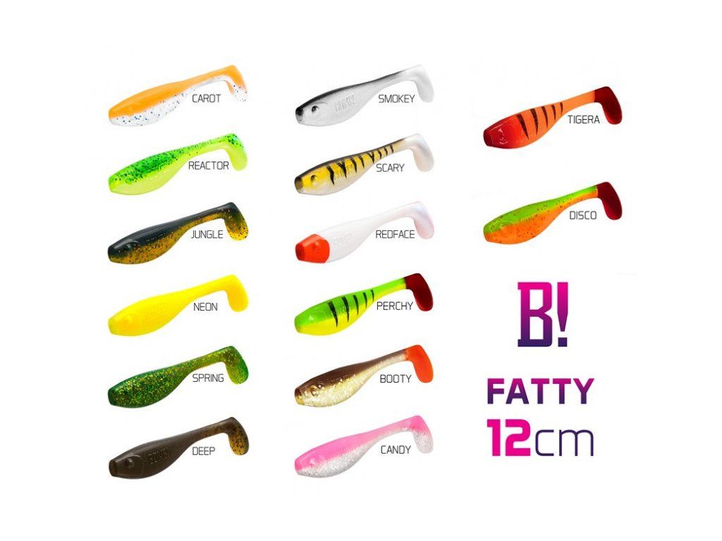 Fatty je hrdým nositelem svého jména. Tato umělá nástraha se vyznačuje tučným tělem, které je ukončeno poměrově štíhlým ocasem. Právě ten ve vodě neskutečně provokuje smysly všech číhajících dravců. BOMB! Fatty je dokonale zpracovanou nástrahou. Preciznost samotných detailů, včetně jemně strukturovaného povrchu těla je bezchybná. Díky široké nabídce těch nejúčinnějších barevných variací je Fatty tím pravým kladivem na přívlačový lov. Určitě oceníte i samotný materiál nástrahy. Ten je dokonale elastický, příjemně měkký a díky své houževnatosti i neuvěřitelně odolný a trvanlivý. To zaručuje nespočetné hodiny pravé rybářské euforie u vody! Hmotnost nástrahy: 16gDoplňkové parametry