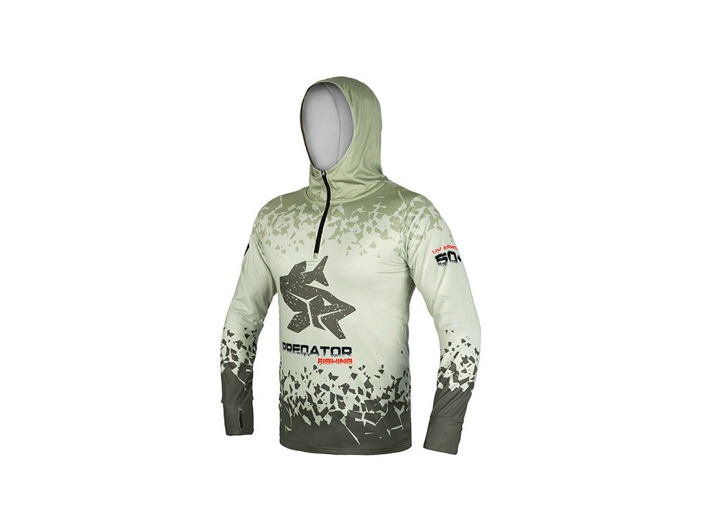 Pro příznivce lovu dravých ryb je zde triko s kapucí Delphin UV ARMOR 50+ Predator poskytující důkladnou ochranu před přímým slunečním zářením během letních dnů. Použitá látka s ochranou UPF 50+ zabrání spálení citlivé pokožky a zároveň na dotek příjemně chladí i během nejteplejších dnů. Mysleli jsme také na nejpřehřívanější část těla, hlavu. Triko je vybaveno výrazně vyvýšeným límcem a kapucí, ale také prodlouženými rukávy s otvory na palec, což zvyšuje ochranu rukou. Velkou výhodou příjemného, elastického materiálu je schopnost rychlého vyschnutí v případě namočení během lovu. Samotné tričko je vysoké kvality, stejně jako použitý barevný potisk. Nabízíme je v široké škále velikostí od S až XXXL. Designově je tričko laděno do světle zelené barvy s tmavě zelenou grafikou a s originálním motivem útočící štiky. Složení: 90% polyester, 10% elastanDoplňkové parametry