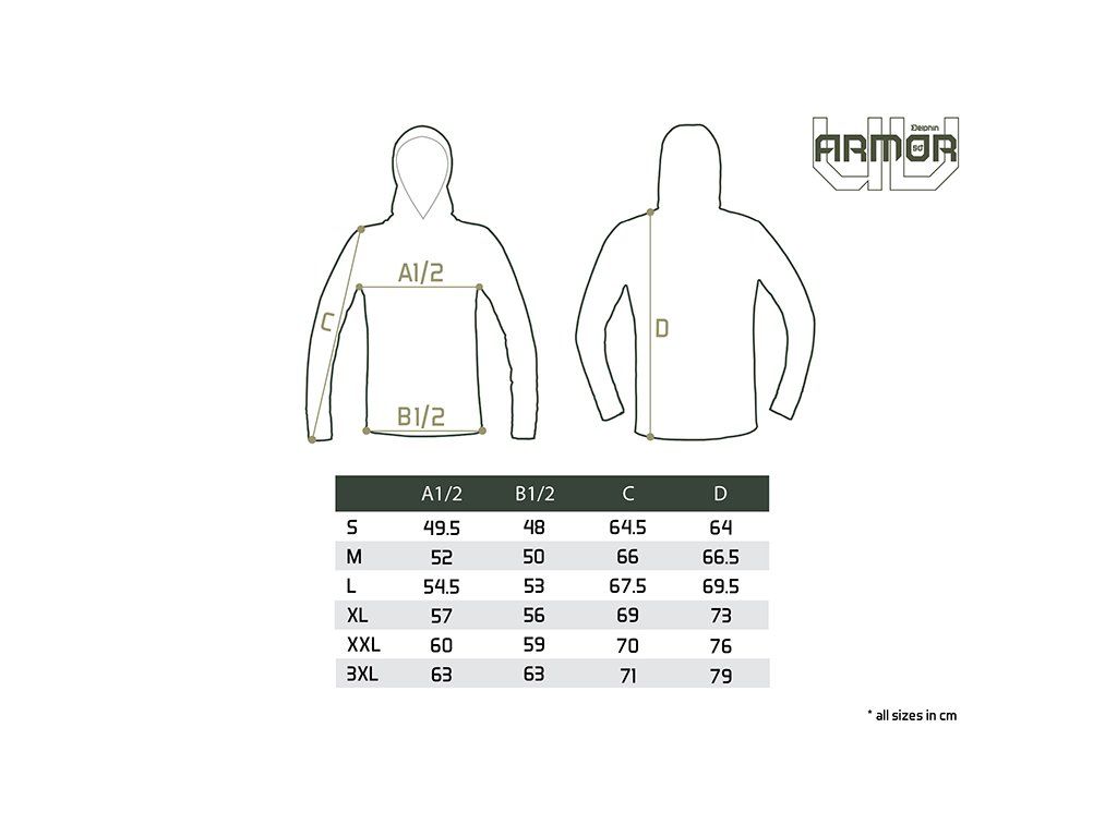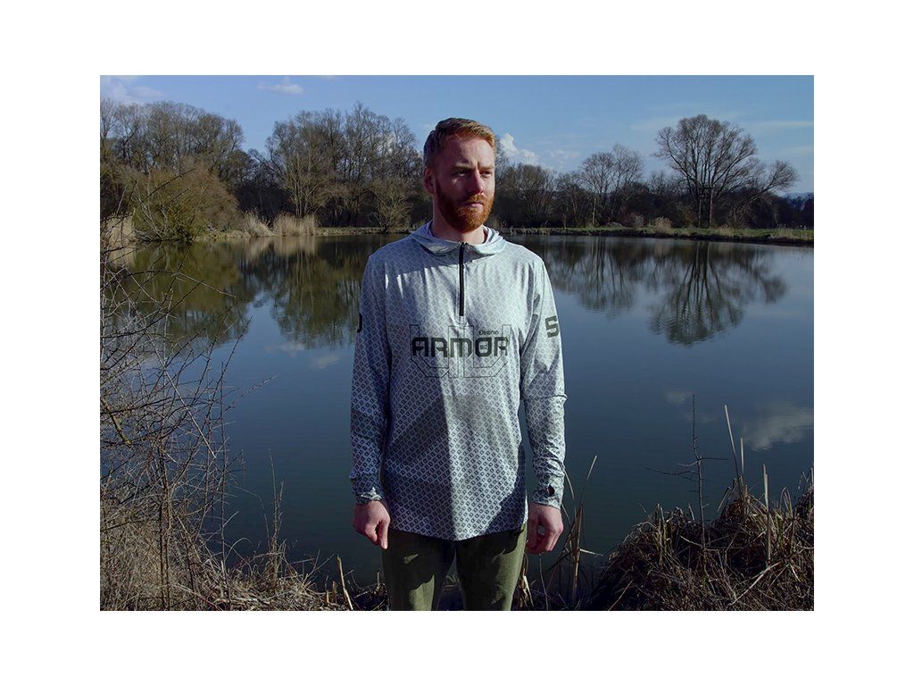 Tričko s kapucí Delphin UV ARMOR 50+ poskytuje důkladnou ochranu před přímým slunečním zářením během letních dnů. Použitá látka s ochranou UPF 50+ zabrání spálení citlivé pokožky a zároveň na dotek příjemně chladí i během nejteplejších dnů. Mysleli jsme také na nejpřehřívanější část těla, hlavu. Triko je vybaveno výrazně vyvýšeným límcem a kapucí, ale také prodlouženými rukávy s otvory na palec, což zvyšuje ochranu rukou. Velkou výhodou příjemného, elastického materiálu je schopnost rychlého vyschnutí v případě namočení během lovu. Samotné tričko je vysoké kvality, stejně jako použitý barevný potisk. Nabízíme je v široké škále velikostí od S, až po XXXL. Složení: 90% polyester, 10% elastanDoplňkové parametry