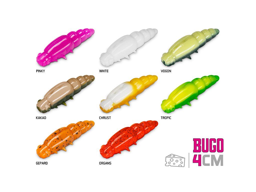 BUGO je jedinečným modelem měkkých nástrah značky Delphin, při kterých jsme použili unikátní plovoucí Fexifloat materiál, vyznačující se velmi vysokou poddajností a pružností, čímž představuje pro dravce naprosto neodolatelné sousto. Při vývoji nástrahy jsme se inspirovali přirozenou potravou dravých ryb, v tomto případě zejména larvou vosy. Naši designéři si dali záležet zejména na detailech jako jsou oči nebo zárodky křídel. Díky novému materiálu nástraha disponuje také dvěma velmi efektivními vlastnostmi. První je neuvěřitelná pružnost materiálu, což zamezí poškození nástrahy i po více záběrech a zdolaných rybách. Druhá významná vlastnost materiálu je nasákavost aroma. Díky tomu, zejména při lovu pstruhů dochází k opětovnému ataku nástrahy ze strany dravce. Při jakémkoli stlačení dochází k uvolňování výrazného sýrového aroma, které rybu zaujme a přinutí ji k opětovnému, agresivnějšímu záběru. BUGO nabízí širokou škálu těch nejúčinnějších barevných provedení, která byla vybrána na základě dlouhodobých testů na různých vodních plochách. Navíc jsou tyto barvy UV aktivní a umožňují intenzivnější odraz slunečního záření pod vodou, díky čemuž se nástrahy stávají nepřehlédnutelnými i ve velkých hloubkách nebo za slabých světelných podmínek. Masivní tělo v kombinaci s plovoucím materiálem zpomalí propad nástrahy vodním sloupcem. Nástrahu BUGO je vhodné použít s mikro jigy nebo tungstenovou hlavičkou nastraženou na jigovém háčku. Díky realistickému vzhledu, neodolatelnému aroma či extrémní pružnosti tato nástraha nesmí chybět ve výbavě žádného nadšence lovu pstruhů. Kromě toho je však vhodná i pro lov jiných menších ryb jako například okoun a jelec. Nepohrdne jí však ani větší dravec jako štika či candát. Nástrahu BUGO dostanete ve výhodném 15 kusovém balení, abyste jich během lovu měli vždy dostatečné množství. Hmotnost nástrahy: 1,5gDoplňkové parametry