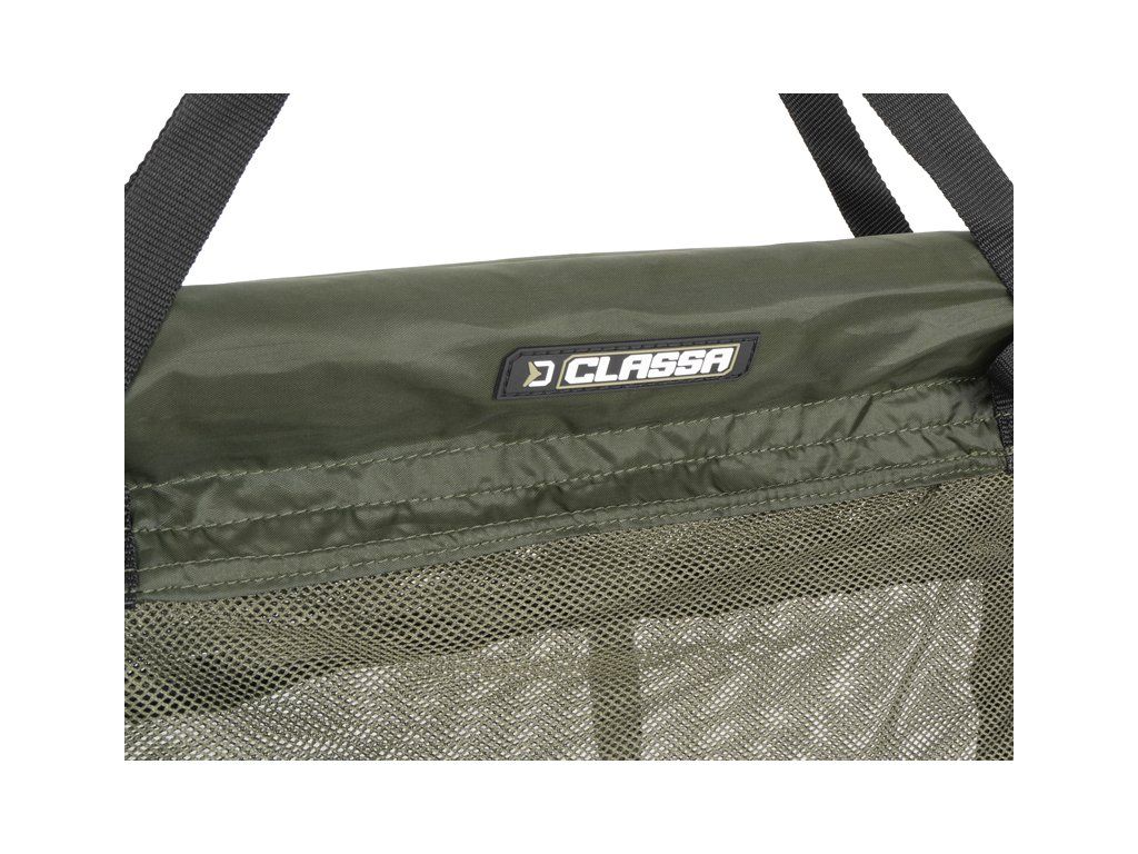 Delphin Classa CWS je praktická pomůcka vhodná pro bezpečné a šetrné vážení či krátkodobé přechovávání šupinatých úlovků. Tak jako všechny produkty ze série CLASSA i tato vážící taška se vyznačuje kvalitním zpracováním, funkčností a velmi příjemnou cenou. Ramena tašky jsou po celé délce opatřena plováky, což umožňuje bezpečně přechovávat úlovek ve vodě, během přípravy například na focení. Hlavní část je tvořena jemnou síťovinou, která je k rybám maximálně šetrná. Díky použitému materiálu při zvedání a manipulaci s rybou všechna voda zevnitř vyteče, což umožňuje přesné vážení. Síťka je vyztužena dvěma černými textilními popruhy přecházejícími do středového úchopu. Díky dlouhým úchopům lze tašku jednoduše zavěsit na váhu. Taška je navíc opatřena textilními úchopy na obou stranách, pro snadné zvedání a přenášení. Masivní zip je po obou bocích a také na vrchní části, to znamená, že CWS dokážete téměř celou rozzipovat pro příjemnější manipulaci s rybou. Samozřejmostí je kotevní šňůra o délce 3m a se závitem na konci. Díky tomuto systému je kotvení na břehu velmi bezpečné. Šňůra je umístěna v integrovaném, kompaktním sáčku na boku tašky. Kromě toho se na boku nachází klip, sloužící k fixování běžců zipu, aby nedošlo k nechtěnému otevření tašky a úniku úlovku. Technické parametry: Rozměry 100x50x8cm Transportní rozměry: 100x12x12cm Hmotnost: 850gDoplňkové parametry