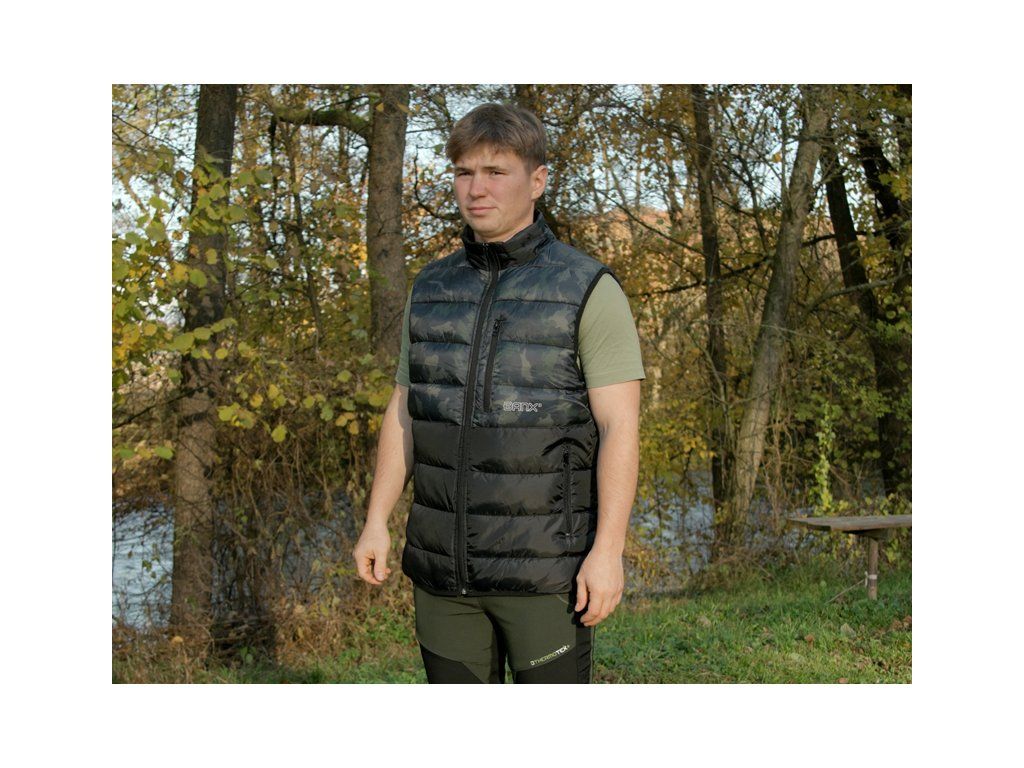 Zateplená vesta přinášející skvělý tepelný komfort během chladných, podzimních či zimních dní. Je vyrobena z tkaniny, která je příjemná na dotek a zároveň snadno udržovatelná, což je velmi praktické při použití během rybolovu a jiných outdoorových aktivitách. Vesta je zároveň příčně prošívaná, což vytváří stylový vizuální prvek produktu. Výplň vesty je extra lehká a zajišťuje výborné termoizolační vlastnosti. Zapínání je zajištěno pomocí kvalitního zipu, překrytého z vnější strany tkaninou, což zvyšuje jeho odolnost vůči vnějším podmínkám. Na obou stranách se nacházejí dostatečně velké kapsy na ruce nebo pro odložení potřebného příslušenství. Vesta Banx disponuje také vyvýšeným límcem pro lepší překrytí krku a šíje při nízkých teplotách vzduchu. Design se skládá z černé barvy, kterou stylově doplňuje naše patentovaná kamufláž BANX. Díky této kombinaci ji můžete využít nejen při rybolovu, ale také k běžnému nošení. Podle přiložené velikostní tabulky si prosím zkontrolujte vyhovující velikost. Materiálové složení: 100% Polyester Pojem BANX vyjadřuje patentovanou kamufláž z dílny značky Delphin, která v sobě nese hluboký vzkaz. Jedinečné designové prvky, ze kterých je složená, jí dodávají nezaměnitelný charakter a dělají z ní více než jen vizuální vzor. Kamufláž BANX zobrazuje přesně to, co spojuje naši rybářskou vášeň napříč celou Evropou. Jsou to jezera, řeky či jiné vodní plochy. Od vod rumunského pobřeží, přes vodní nádrže na Slovensku až po ikonická jezera Evropy napříč Německem, Itálií až po úplný západ Evropy ve Španělsku. Právě siluety těchto jezer jsme spojili a vytvořili tak jedinečnou kamufláž s názvem BANX. Není to jen kamufláž - je to mapa. Mapa, která svým precizním designem zobrazuje ty nejznámější revíry Evropy, díky nimž bude vaše výbava vypadat maximálně jedinečně a originálně.Doplňkové parametry