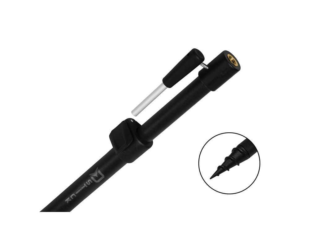 Delphin D-STICK je teleskopickou vidličkou se zavrtávacím hrotem. Už první pohled napoví o prémiovém vyhotovení tohoto robustního a přitom velmi lehkého produktu. Základ tvoří silnostěnné trubky s matnou černou povrchovou úpravou, které jsou velmi pevné a zajišťují vysokou životnost vidličky. Tento model přichází s inovovaným vysouvacím a zajišťovacím mechanismem a je vyroben z kvalitního ABS plastu. Přepracovali jsme ho a nyní je jednodušší na obsluhu a zároveň spolehlivě brání jakémukoliv samovolnému složení vidličky. Spodní část vidličky je osazena masivním a ostrým vrtákem, který dovoluje zavrtat vidličku i do tvrdších podkladů. Tento vrták je zajištěn kolíkem (nýtem), což je jeho obrovskou výhodou. Díky tomu už nehrozí, že by samotný vrták zůstal zalomený v půdě a vám by tak zůstala nefunkční vidlička! Jedná se totiž o výjimečně silný spoj. Ve vrchní části vidličky je upevněn držák, který se zasouvá do spodního dílu a slouží jako páka pro vyvinutí síly během zavrtávání vidličky do nepoddajného podkladu. Konec vrchního dílu vidličky je osazen masivním závitem pro upevnění koncovky, či elektronického signalizátoru záběru. Technické parametry: model 32-50cm: hmotnost 140g model 60-95cm: hmotnost 210g model 80-130cm: hmotnost 280g model 110-180cm: hmotnost 370gDoplňkové parametry