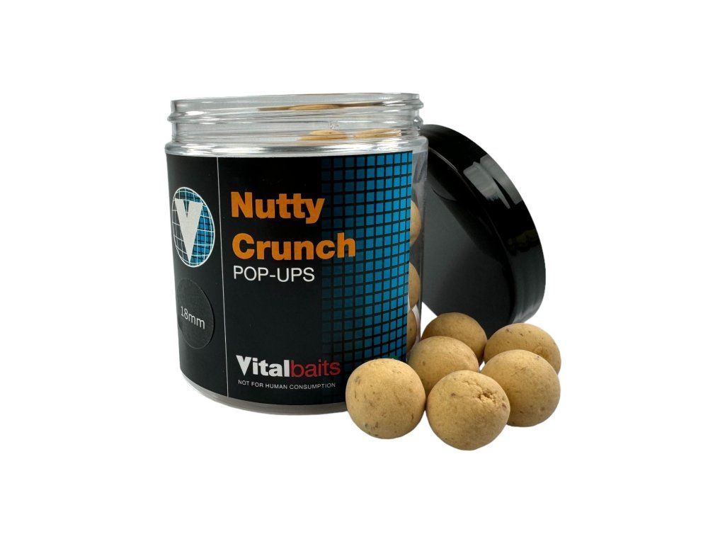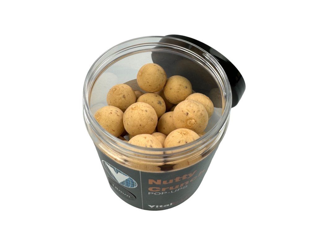 Pop-upy v neutrální béžové barvě doplňující řadu Nutty Crunch boilie. Stejně jako toto boilie i pop-upy získají po ponoření do vody nenápadný vybledlý vzhled. Směsi pro Pop-Up obsahují stejné atraktanty jako krmení stejné řady, ale v ještě větší míře. Vydrží plavat a uvolňovat neodolatelné aroma déle než 48 hodin.Doplňkové parametry