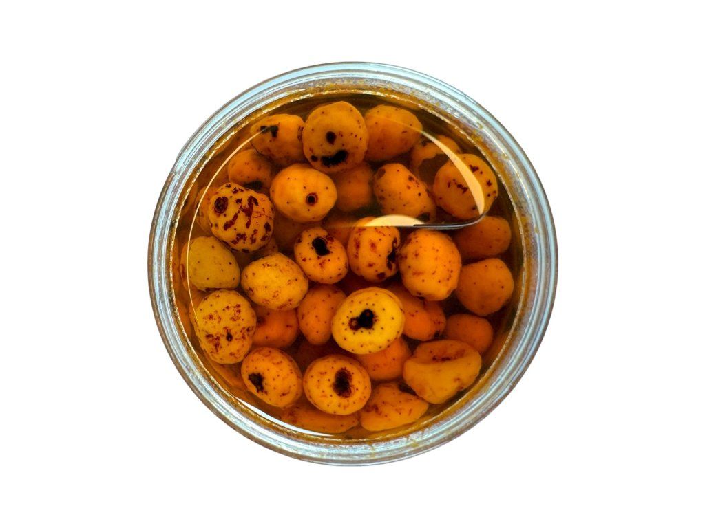 Předvařený připravený a oloupaný Tygří ořech, který si díky unikátní technologii přípravy zachovává všechny živiny a je zachována maximální atraktivita. Tygří ořech je naložený do tekutých sladidel a skořicové příchuti. Je vhodný jako nástraha pod háček.Doplňkové parametry