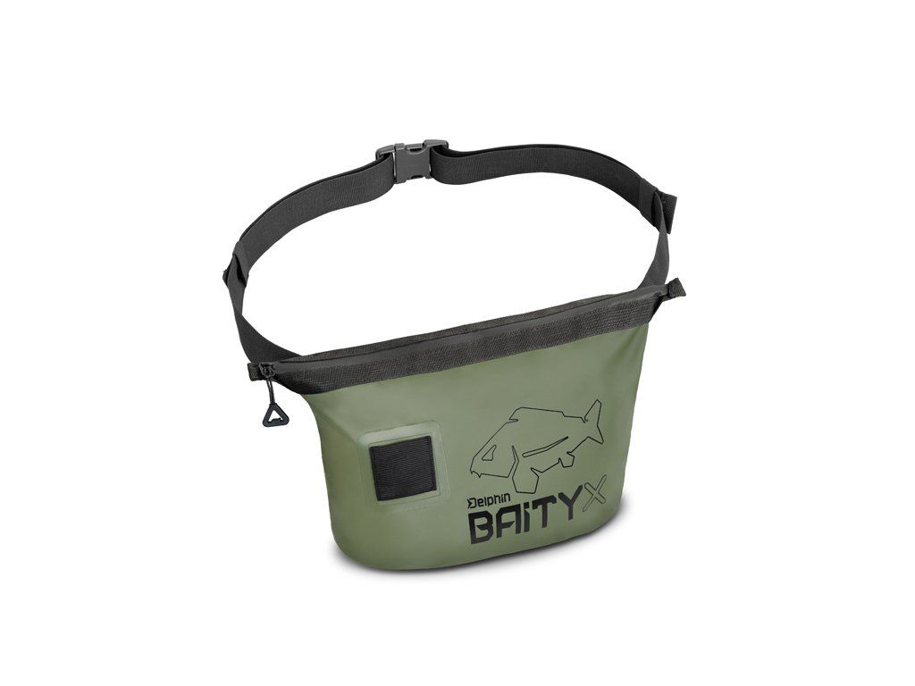 Zakrmovací ledvinka Delphin BAITYX je ideální doplněk pro každého rybáře, který hledá praktickou pomůcku pro zefektivnění zakrmování u vody. Tento produkt ocení zejména kapraři, jejichž hlavním krmením je boilies, ale ledvinka se vyznačuje všestranným použitím, takže do ní můžete vložit i jiné návnady či rybářské příslušenství. Delphin BAITYX je vyrobena z kvalitního EVA materiálu, který se vyznačuje zejména voděodolností a dlouhou životností. Na vrchní části se nachází voděodolný zip se dvěma běžci, které bezpečně udrží obsah ledvinky uvnitř. Vnitřní prostor je dostatečně prostorný, což vám umožňuje do ní vložit potřebné množství krmení. Díky voděodolným materiálům můžete do ní vložit předem předmočený nebo naboostrovaný boilies bez obav z přetečení. Ledvinka z přední strany disponuje gumovým poutkem na vrhací tyč či prak. K uchycení ledvinky kolem pasu slouží délkově nastavitelný popruh s masivním upínacím klipem. Tmavě zelený design ledvinky je doplněn decentní černou grafikou s originálním OutLINE logem kapra. Technické parametry: Rozměr tašky: 38x21x15cm Objem: 12lDoplňkové parametry